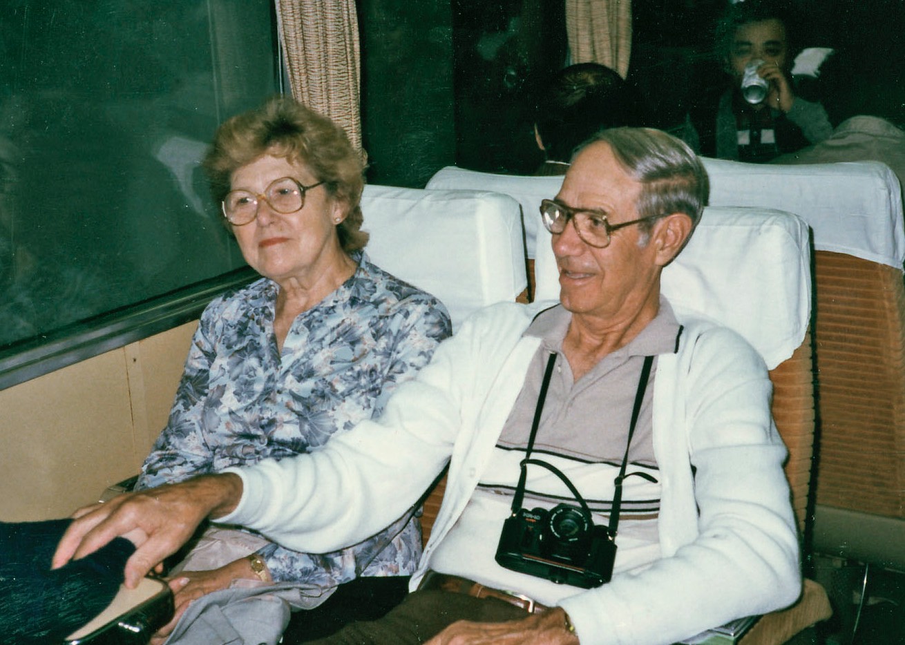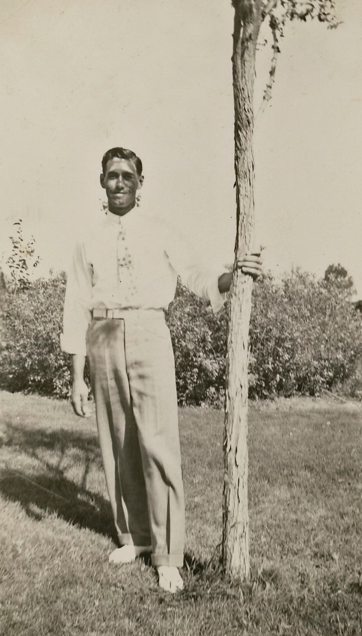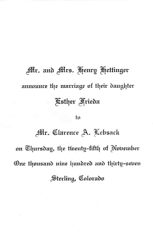 Esther and Clarence, in front of Henry and Alice Hettinger's home, 228 West Main St., Sterling, Colorado.