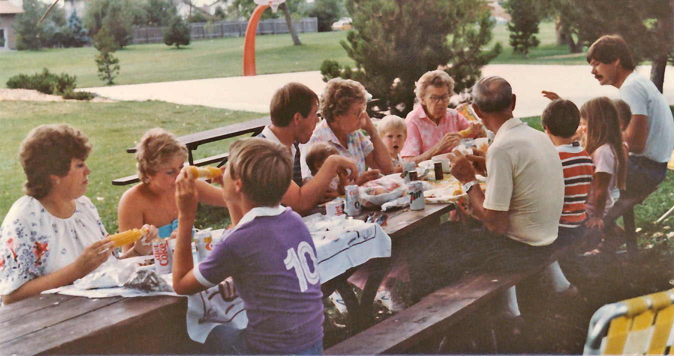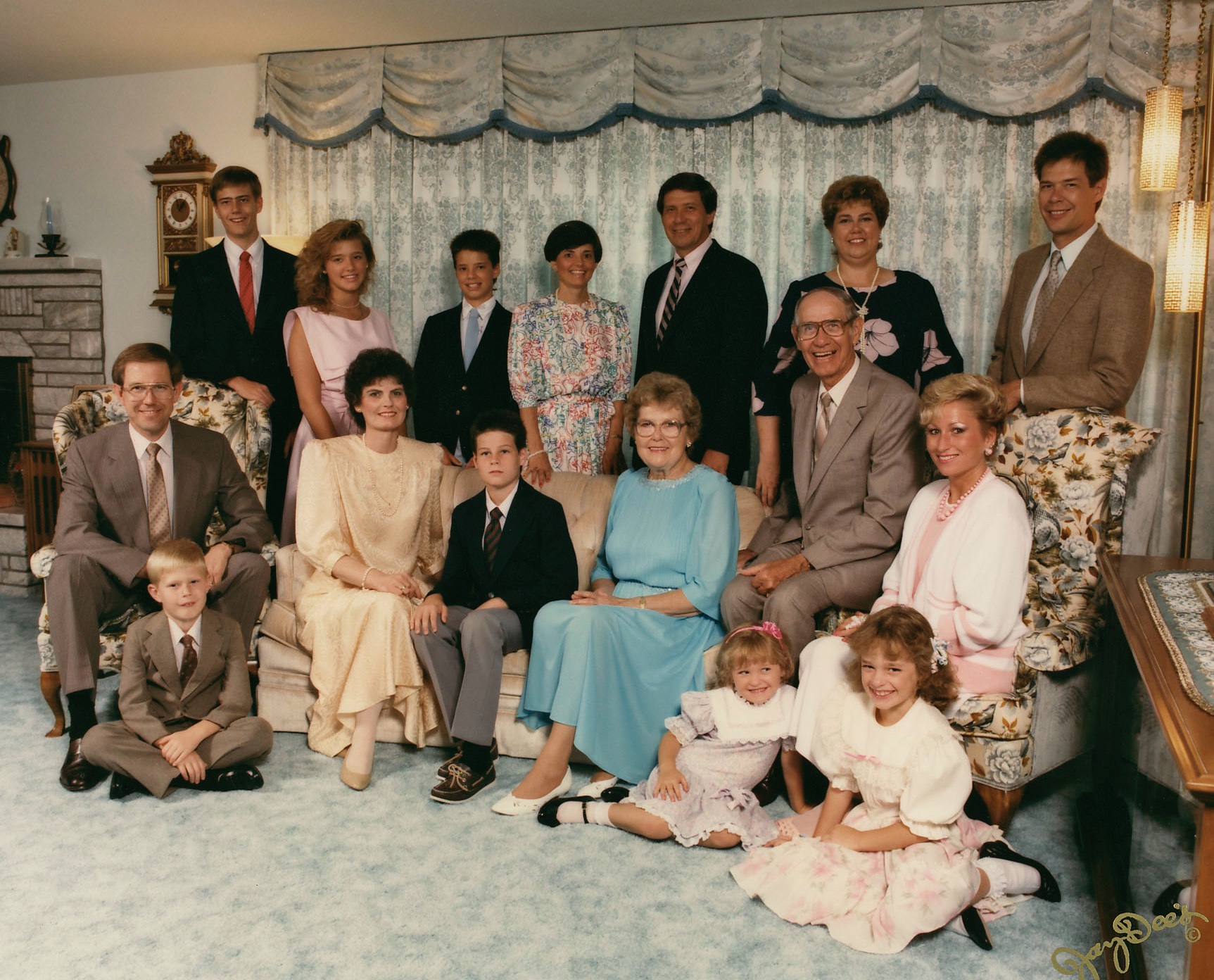 Family in Greeley, Colorado, 1971. Steve, Tom Sharon, Lyle Esther with Heidi Ann, Clarence Katherine Lebsack and Alice Hettinger