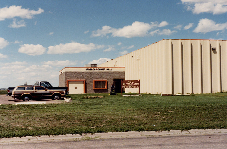 Lebsack-Schmidt Hall on north campus of Northeaster Junior College, Sterling, for auto-farm mechanics curriculum. Named for Clarence Lebsack and Ellis Schmidt, long-term NJC Board members.
