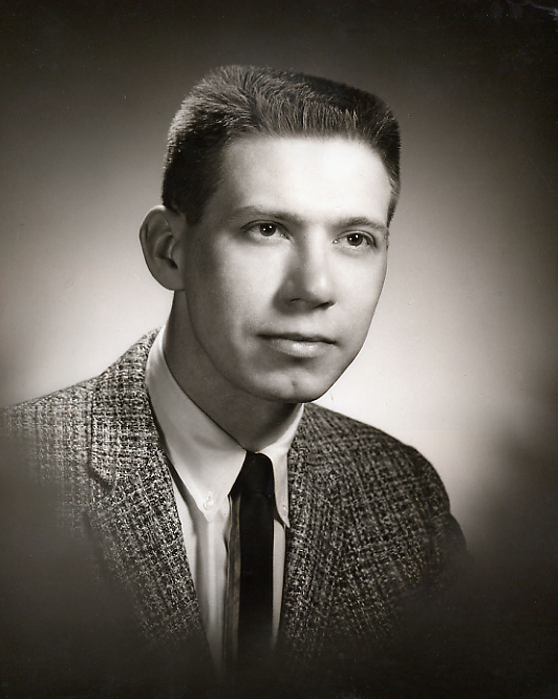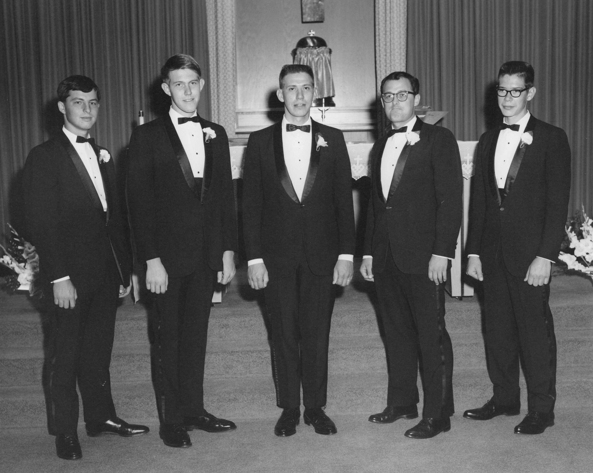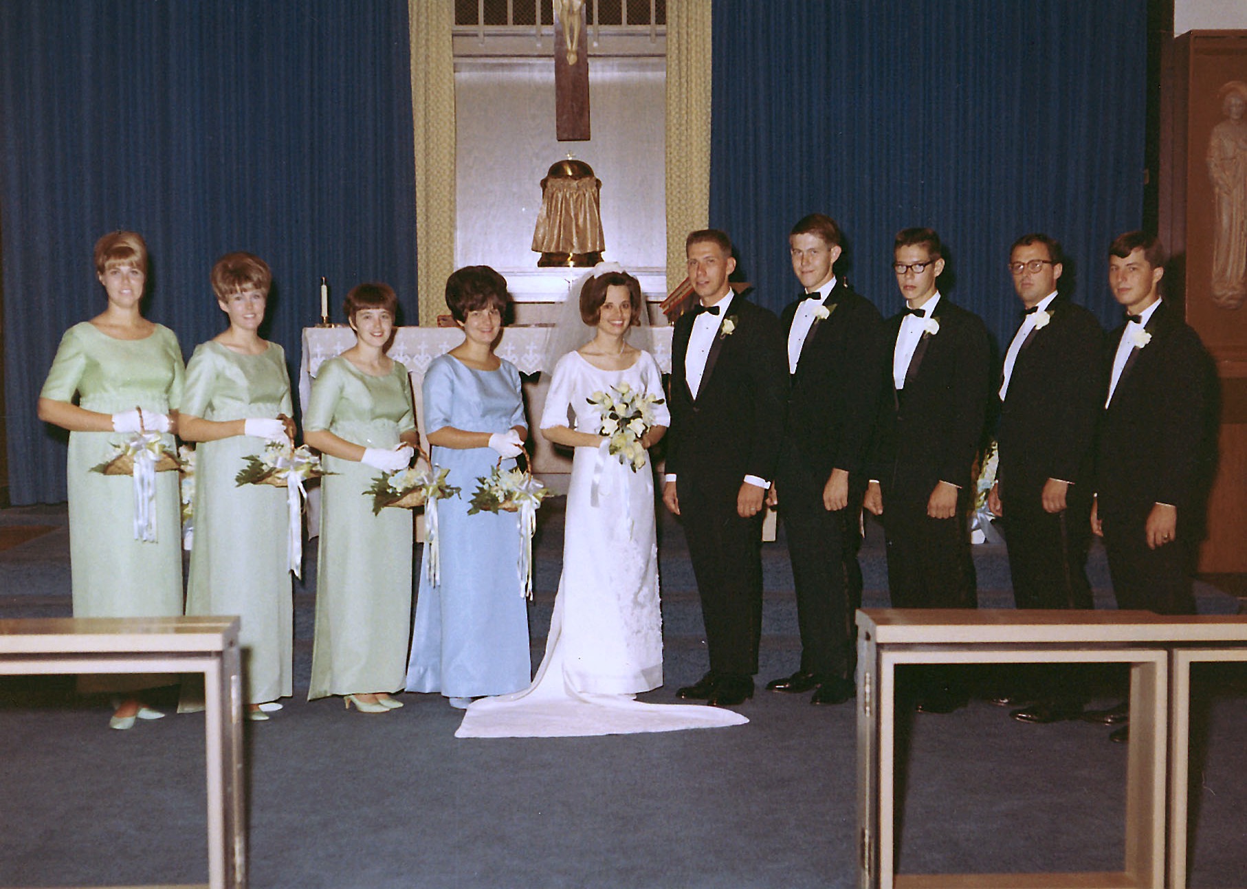 The Sterling High School Band in concert in Chicago, 1961. Tom is tuba player on far left. Director is Lloyd Jensen, seated with wife Gwen, bottom right.
