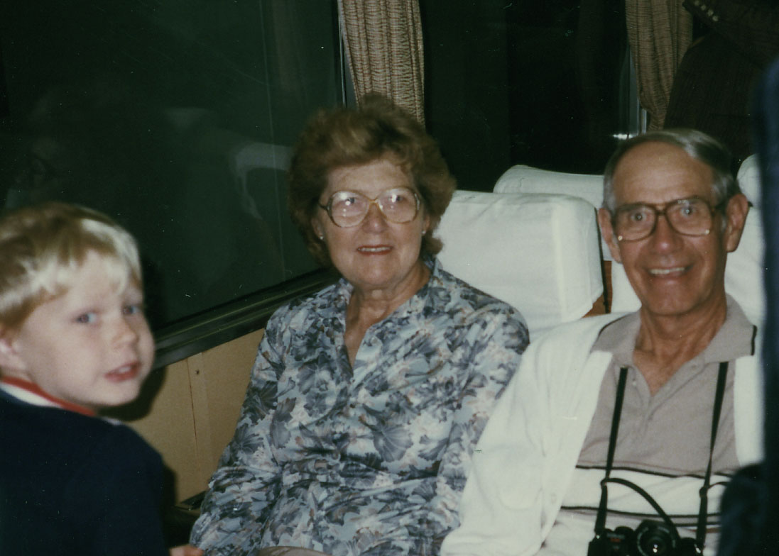 Adam with Esther and Clarence on train to Nikko, Japan, 1984.
