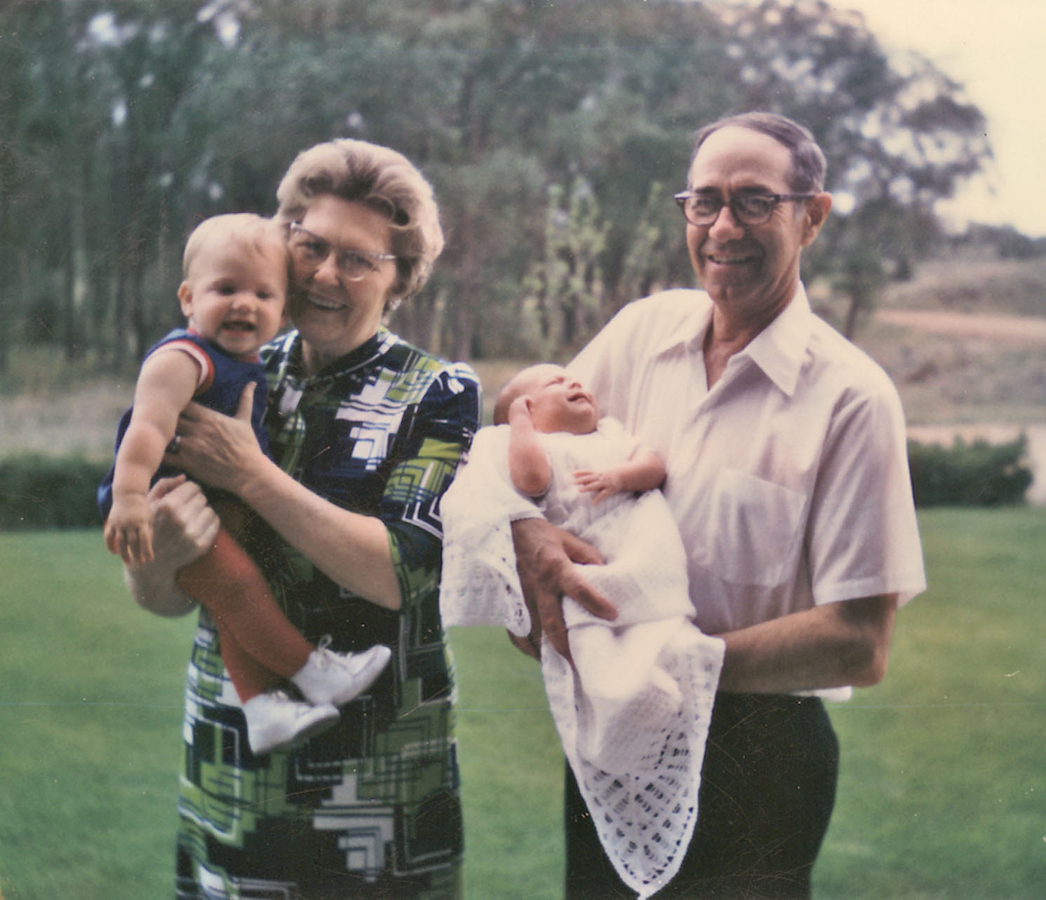 Esther and Clarence with Kirsten (L) and Eliot, May 1972.