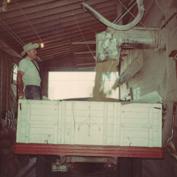 Frank Mari loading feed from mill, 1967