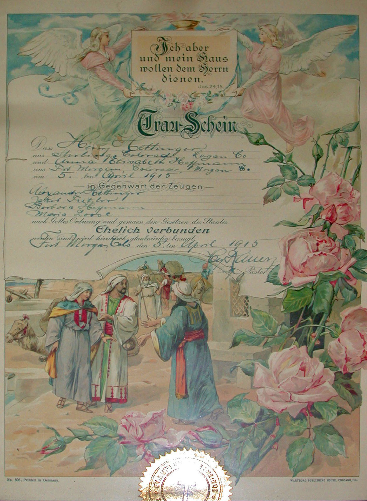 Henry Hettinger and Alice Hoffman's Marriage Certificate, April 5, 1915.