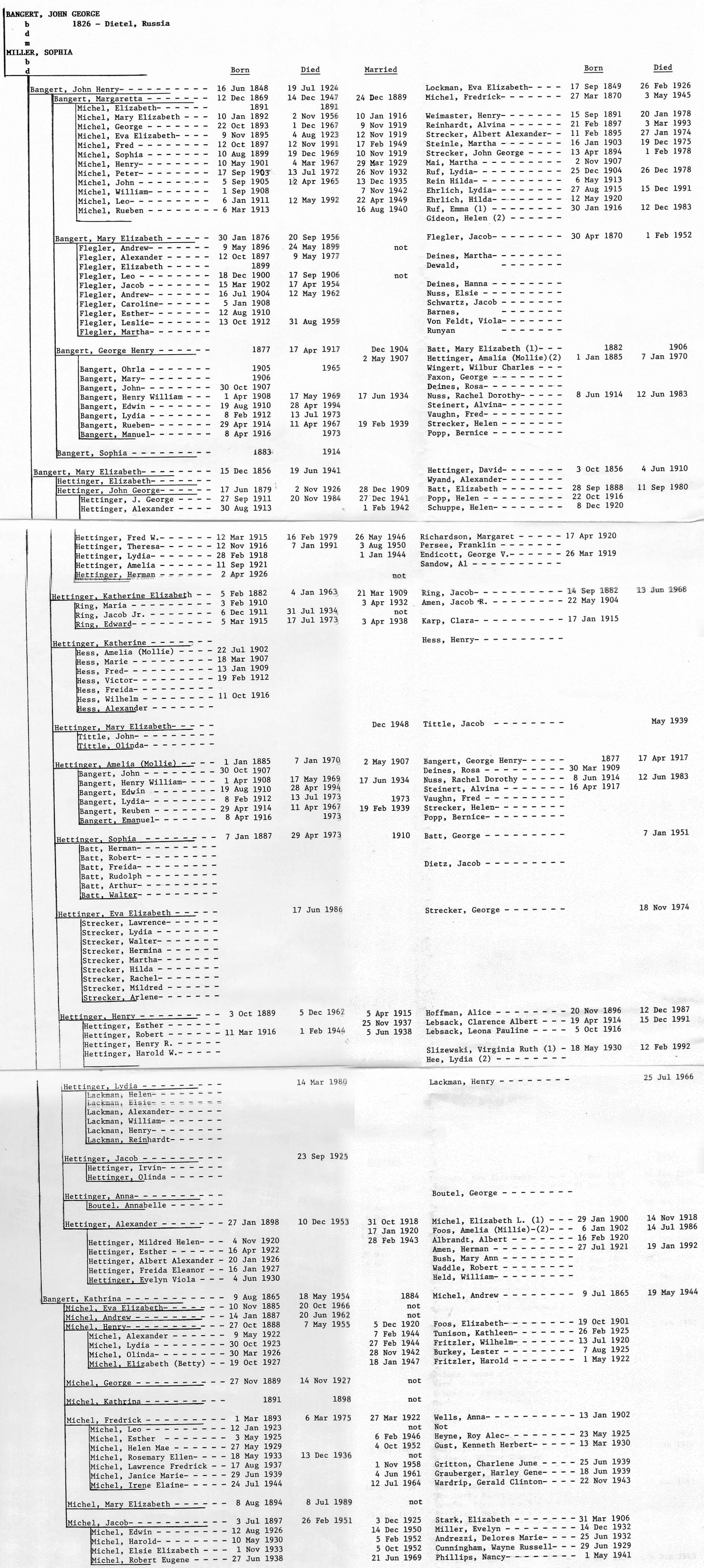 HH215 Bangert/Hettinger Family Tree