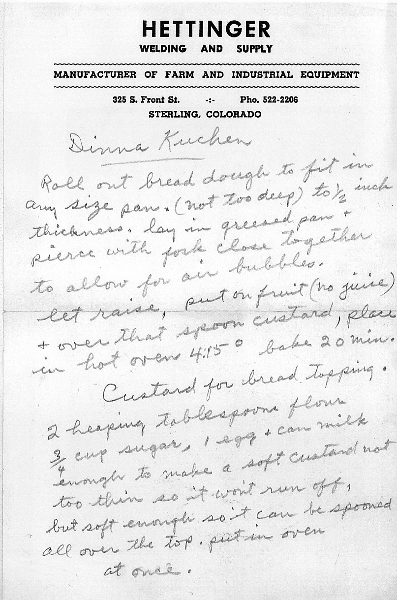 Grandma Hettinger's Kuchen Recipe, usually made with canned cherries or wonderberries.
