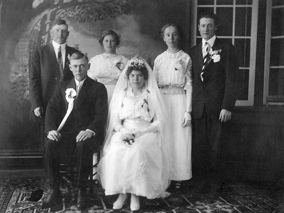 Henry & Alice Wedding, April 5, 1915.Standing (L-R): Jakob Fritzler, Barbara Hoffman, Maria Loos, Alexander Hettinger.