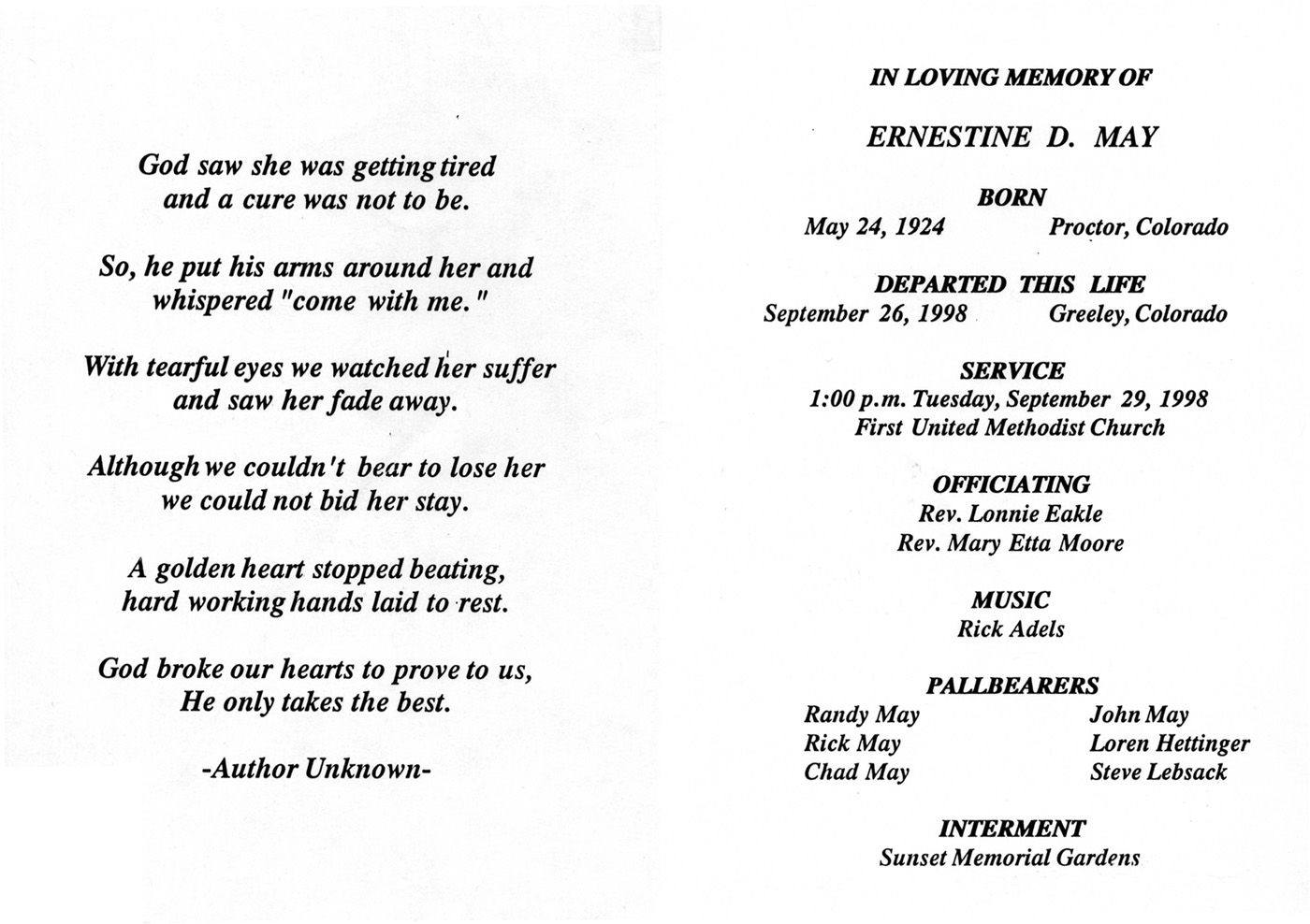 JL226 Ernestine May's Funeral