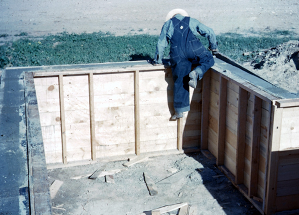 Jacob crawling out of the new scale pit he was building at the North Place, Proctor, about 1950.