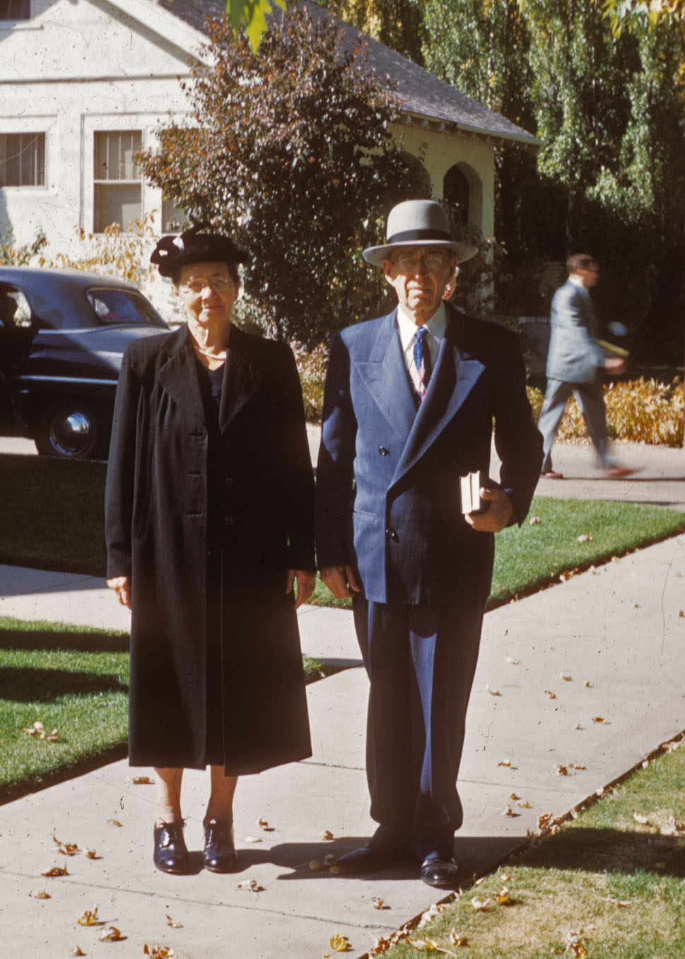 Katherine and Jacob in Greeley, probably coming home from church, about 1952.