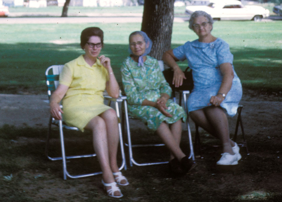 Etta Huntley, Katherine, Anna Uhrich, 1969. Etta and Anna were sisters of Katherine.