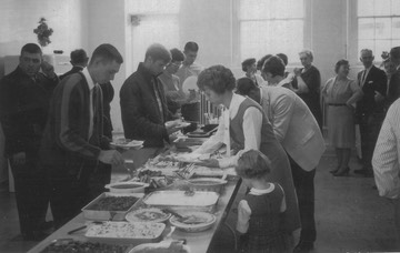 Dean, Gordon, Rick, Mary Lou at Family reunion, Katherine Lebsack's 80th birthday, December 1965.